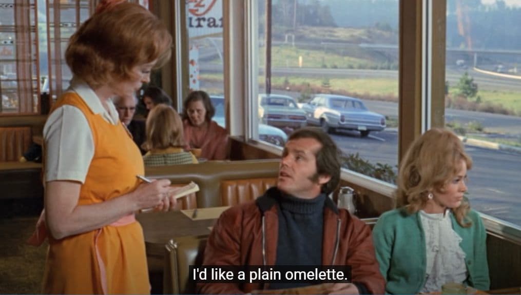 Например, вы пришли в кафе и просите у официанта завтрак. Давайте возьмём пример с Джека Николсона в фильме Five Easy Pieces: